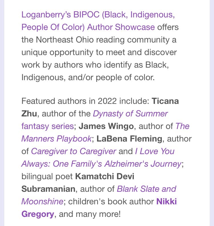 Ticana Zhu will be selling her books at Loganberry Books on August 6th, 2022. The hours are 12PM-4PM.